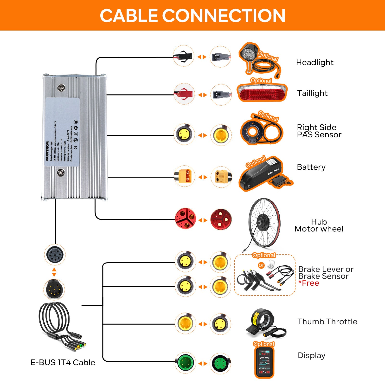 To better matching customer's existing brake system, VARSTROM provides power-cutoff mechanical brake levers and sensors. This device automatically stops the motor when braking which is a critical safety feature for e-bikes.