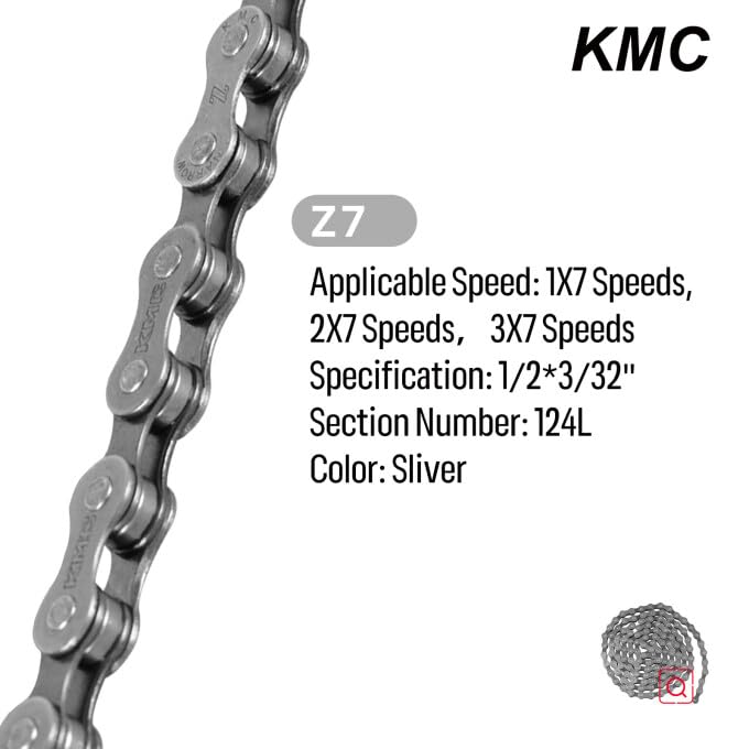 Boasting compatibility with 1x7, 2x7, and 3x7 speed drivetrains, the KMC Z7 chain unlocks a world of possibilities for your bicycle. Whether you're looking to upgrade your existing setup or build a new bike from scratch, this chain is the perfect fit, catering to a wide spectrum of 7 - speed bike configurations.