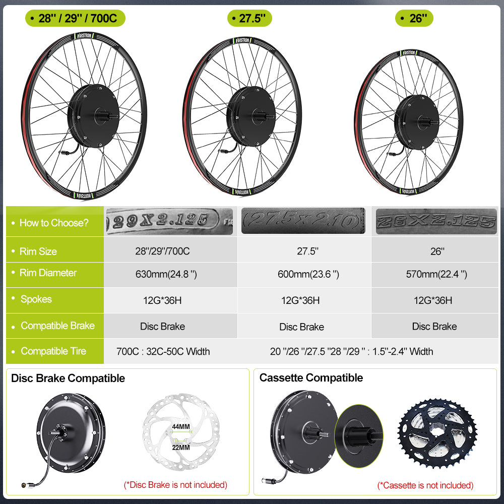 Varstrom 48V 1000W Rear Hub Motor Conversion Kit with Disc Brake and Cassette Body