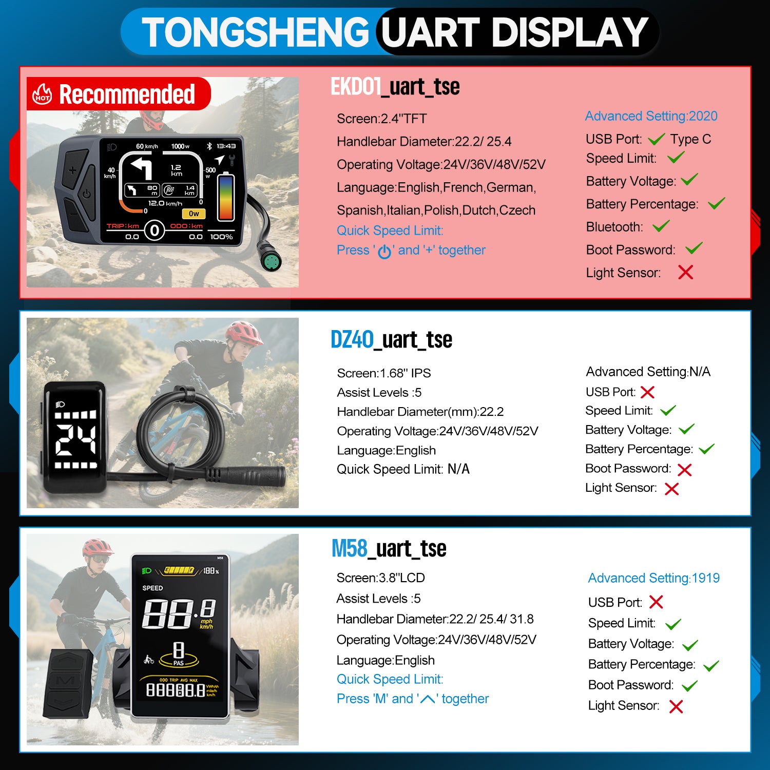 Varstrom provides 3 display options for customers. We recommend the EKD01. If you want the smallest display, you can consider the cheapest DZ40. Please note that if a display is out of stock, we will contact you via email to ask if you'd like to replace another display, please leave an email which we can contact you in your order information.